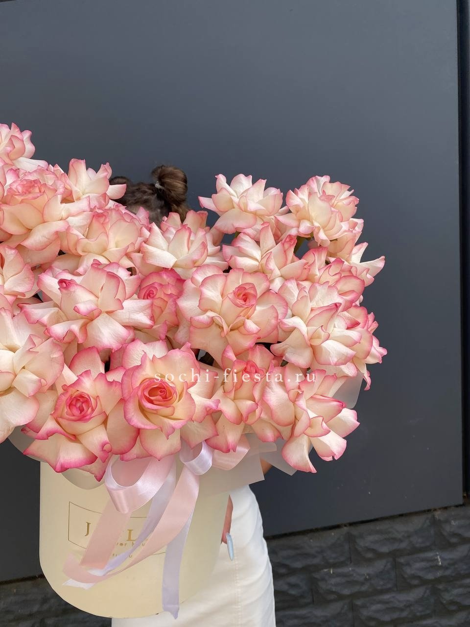 Для заказа товара "31 французская роза Джумилия в боксе" с доставкой в Бийске нажмите в корзину