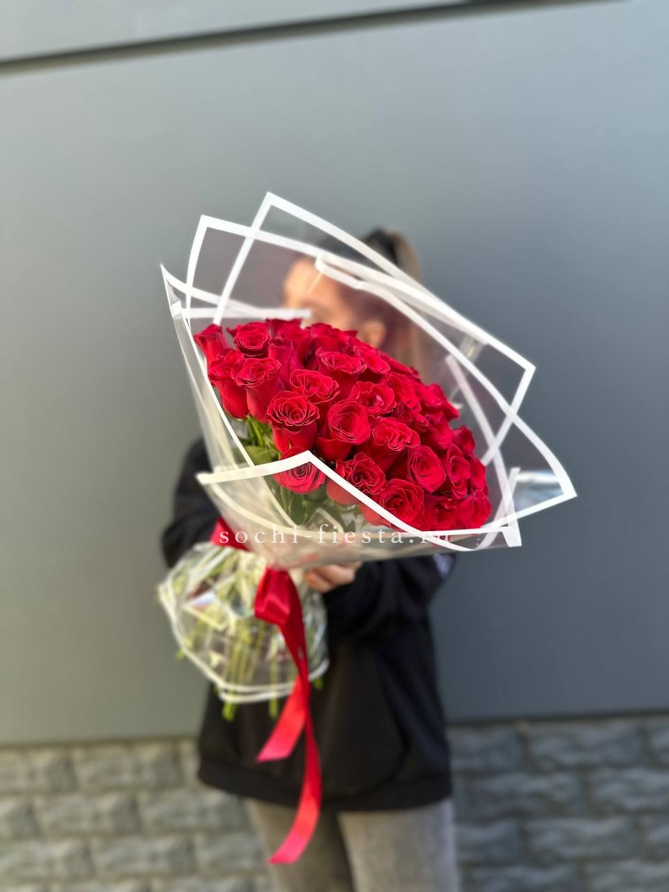 37 роз, лента, дизайнерская пленка.