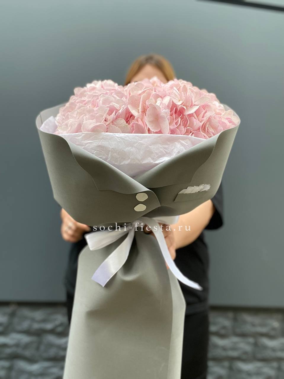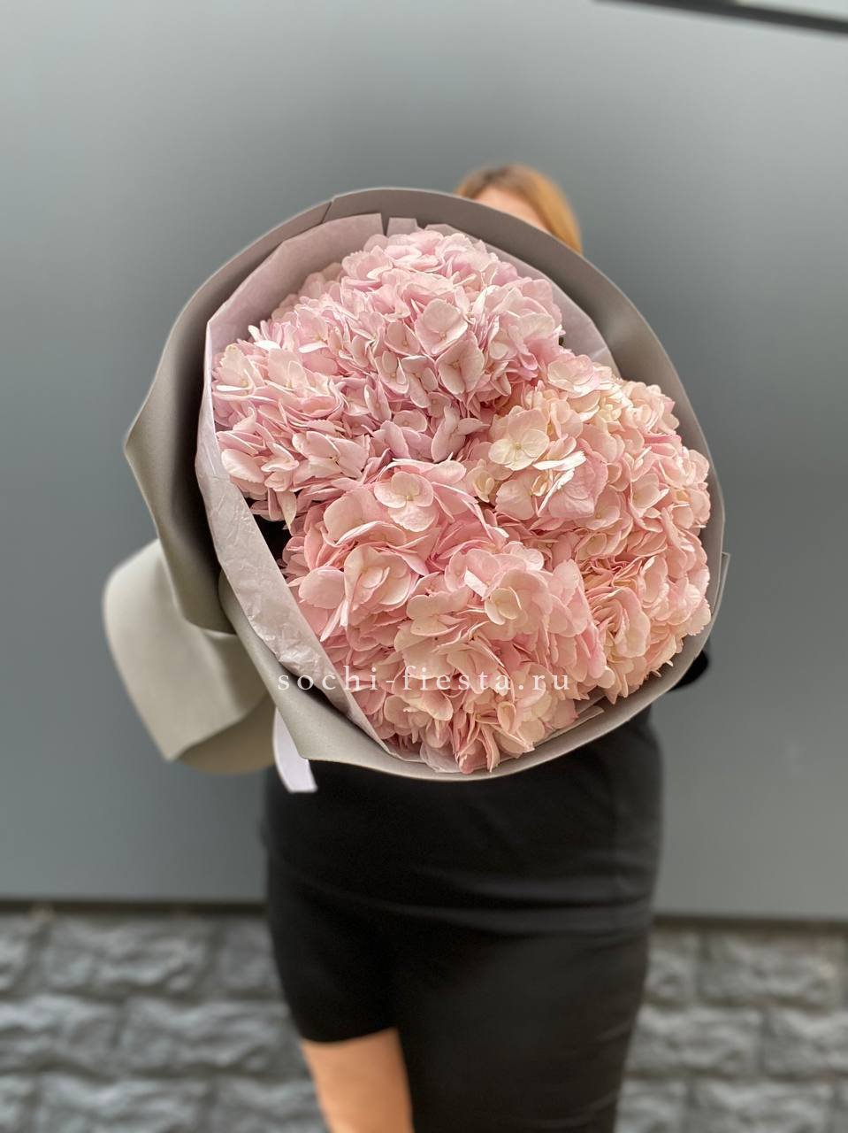 гортензия - 9 шт., лента, дизайнерская упаковка.