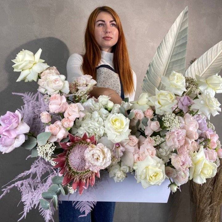 Авторские букеты гиганты в Бийске — формат для тех событий в жизни города, когда обычного букета недостаточно. Юбилей 50 лет, свадьба, открытие бизнеса, значимое корпоративное поздравление — именно к таким поводам клиент заказывает гигантский авторский букет, который невозможно не заметить. Флорист в Бийске создаёт авторские букеты гиганты из 101 и более роз, пионовые гиганты в сезоне, корзины-гиганты для торжественных вручений. Именно масштаб флористического жеста делает момент незабываемым для получателя и всех присутствующих.