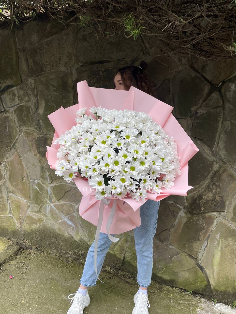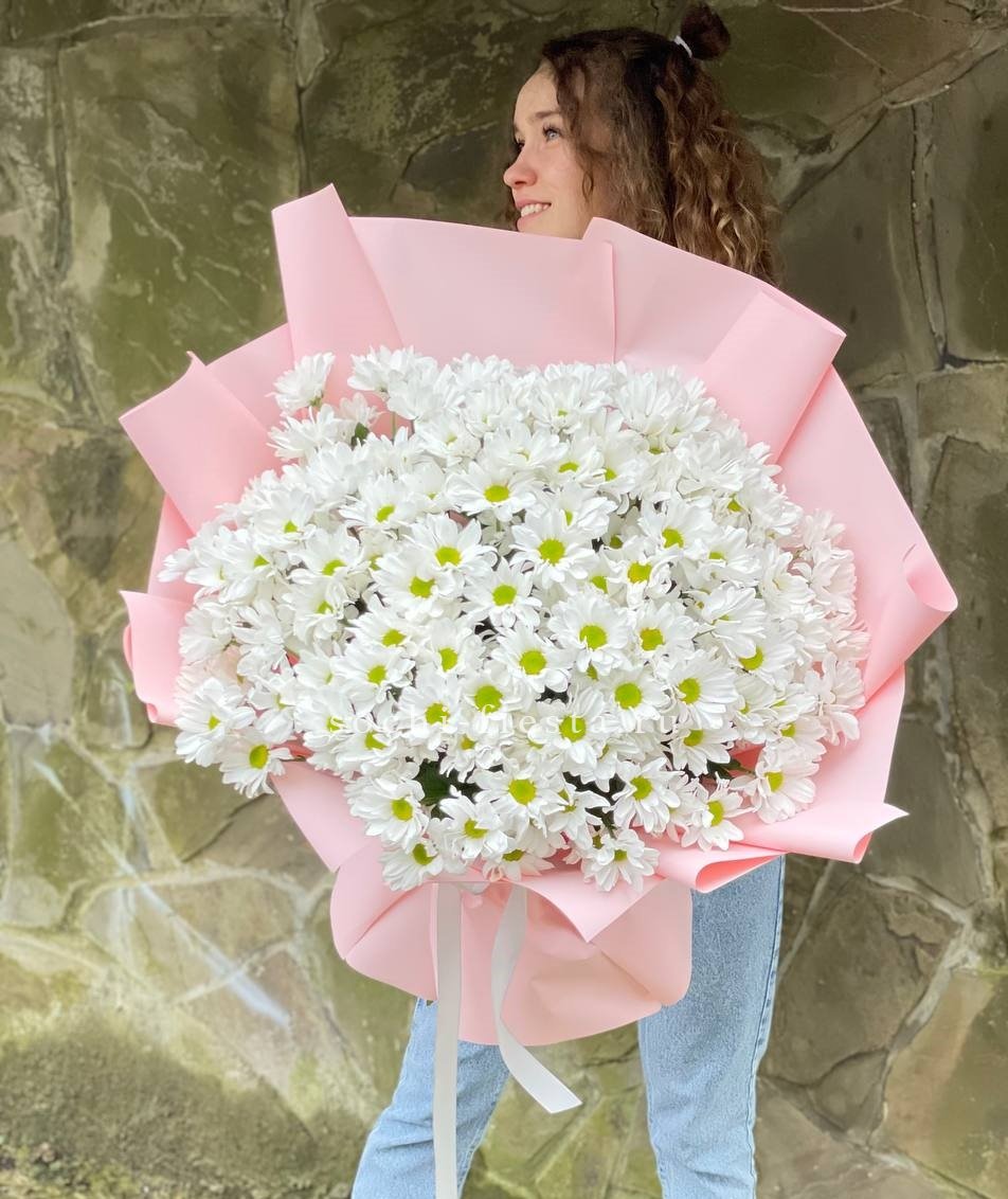 роскошный букет из 101 хризантемы.