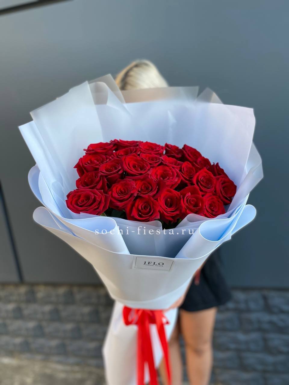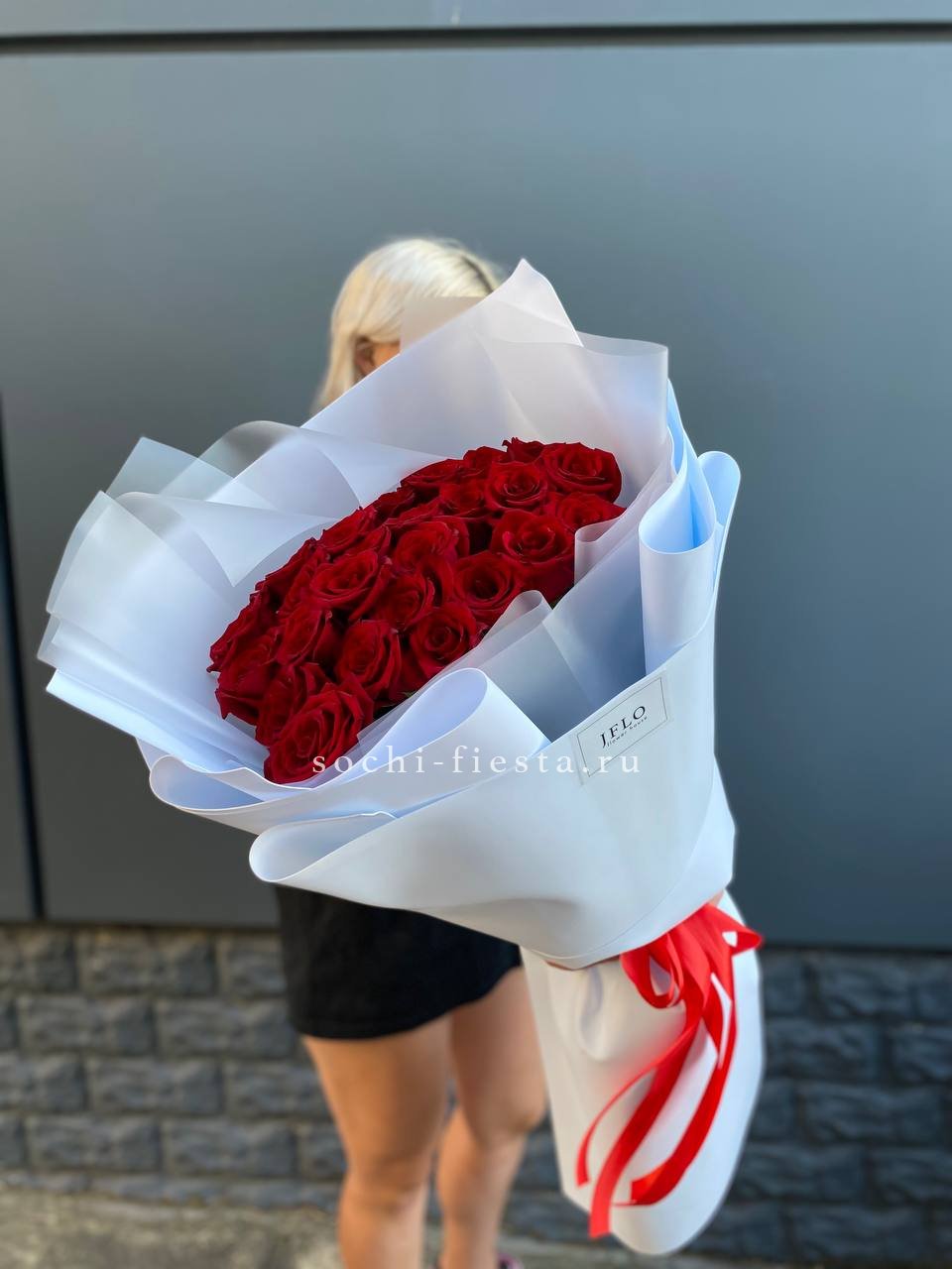 Изначальная цена указана за букет из 15 роз Состав букета на фотографии: 21 кенийских роз, лента, упаковка.