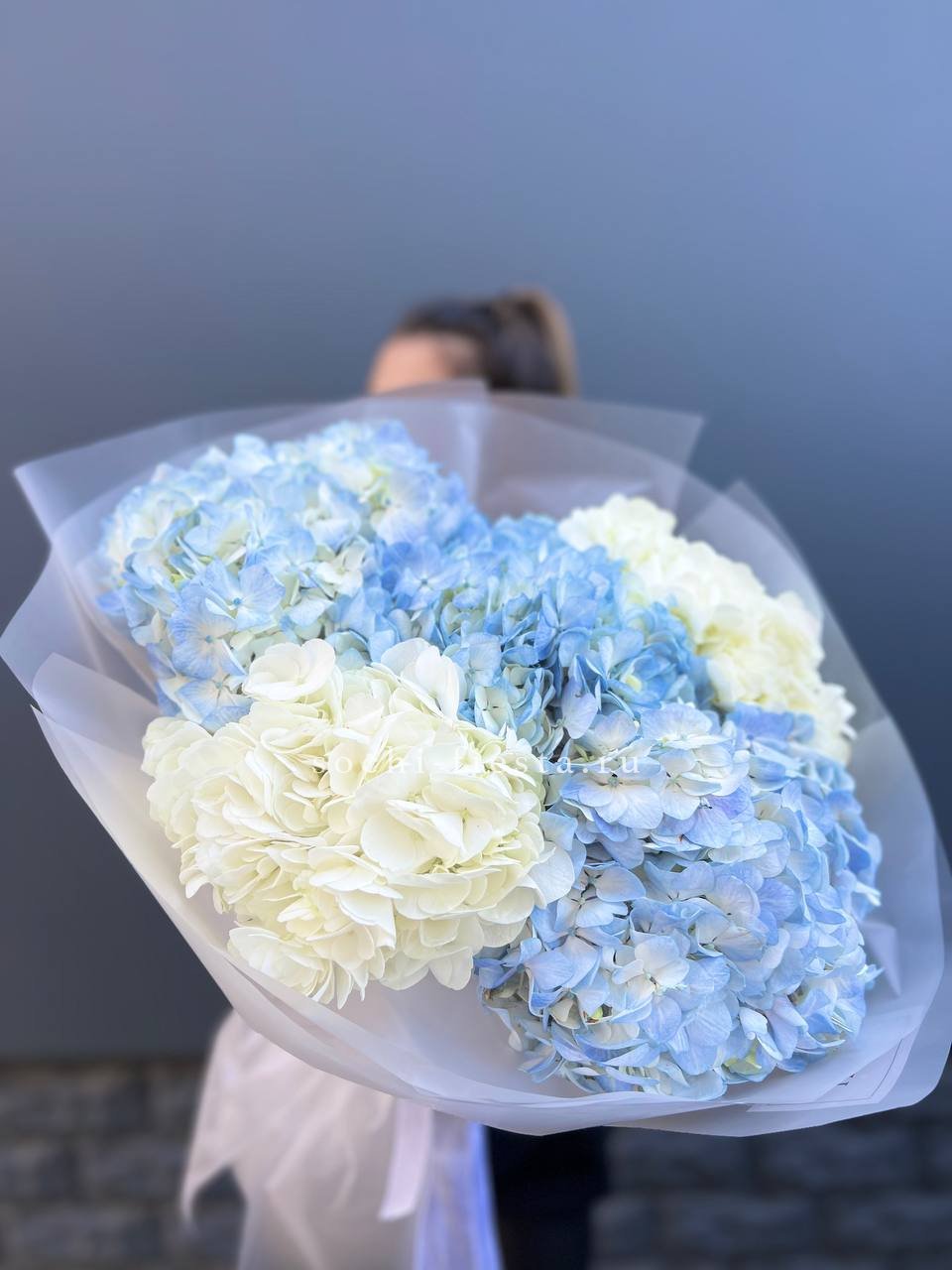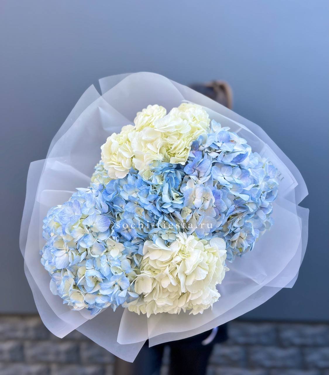 гортензия - 11 шт., лента, дизайнерская упаковка.