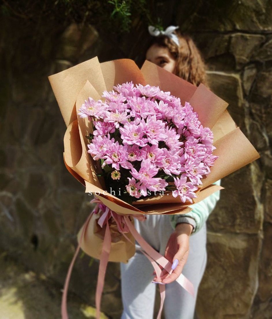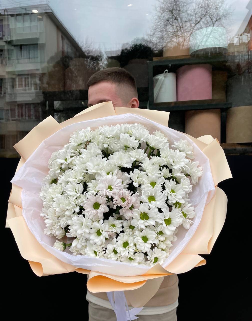 хризантема одноголовая - 39 шт., лента, дизайнерская упаковка.