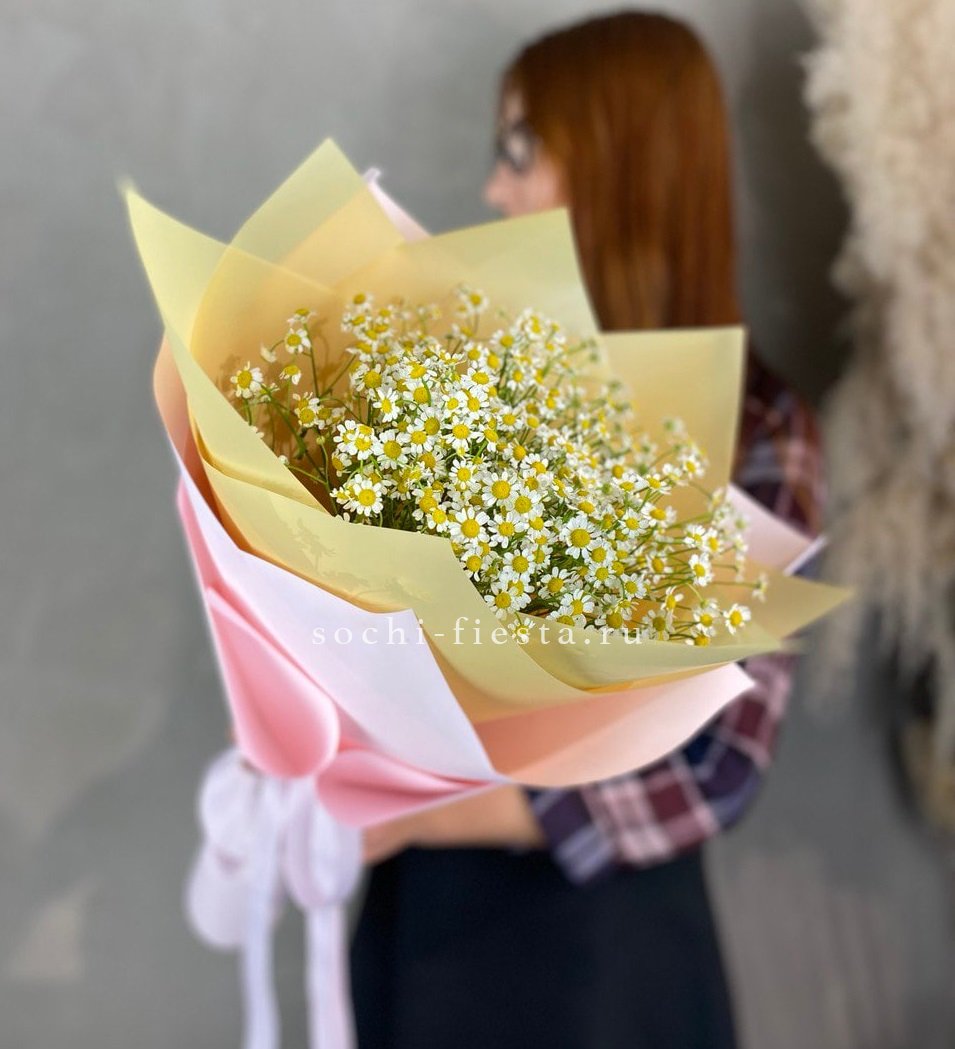 ромашки (танацетум камилла) - 11 веток, лента, упаковка.