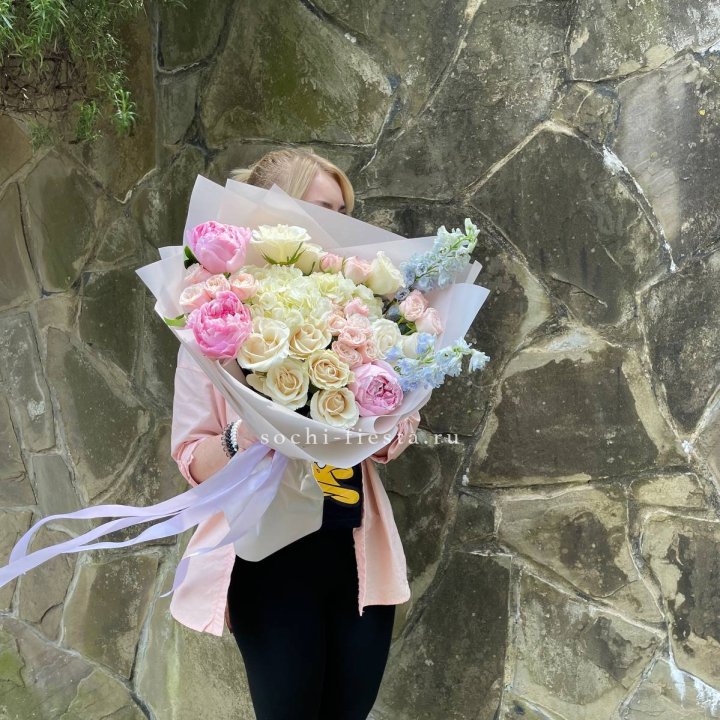 • Редкий состав — David Austin, ранункулюс, анемоны, сезонные пионы.