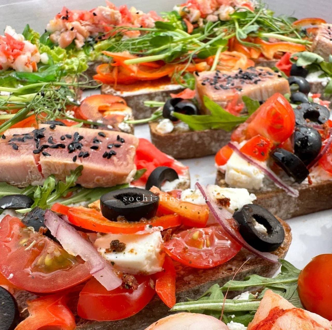 мит боллы- 12 шт. Сырные вафли- 6 шт. Овощная и фруктовая корзинки. Сосиски в тесте- 6 шт. Мини-оладушки- 80 шт. Улитки с ветчиной и сыром- 6 шт.