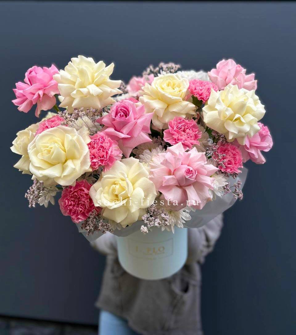 Коробка французских роз и диантусов "Бони"