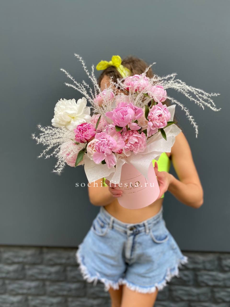 15 пионов, пампасная трава, цилиндр D13.