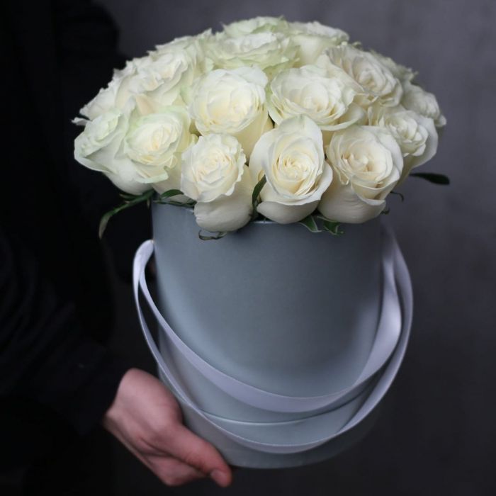белые розы, диантусы, герберы, эвкалипт, бокс 20.