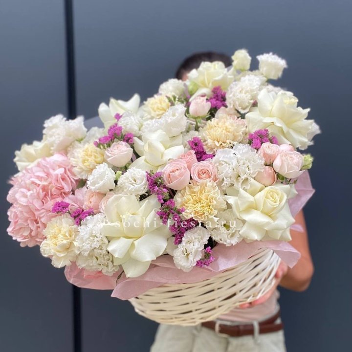 Каждый сезон приносит в Бийске свой ассортимент корзин. Весной флорист создаёт корзины с тюльпанами и нарциссами — лёгкие, нежные, полные ощущения обновления. В мае-июне приходят пионы — Sarah Bernhardt, Bowl of Cream, Red Charm — главный флористический праздник. Осенью — хризантема в тёплых гаммах с декоративными ягодами и ветвями. Зимой — хвойные аранжировки с амариллисом для праздничной атмосферы.