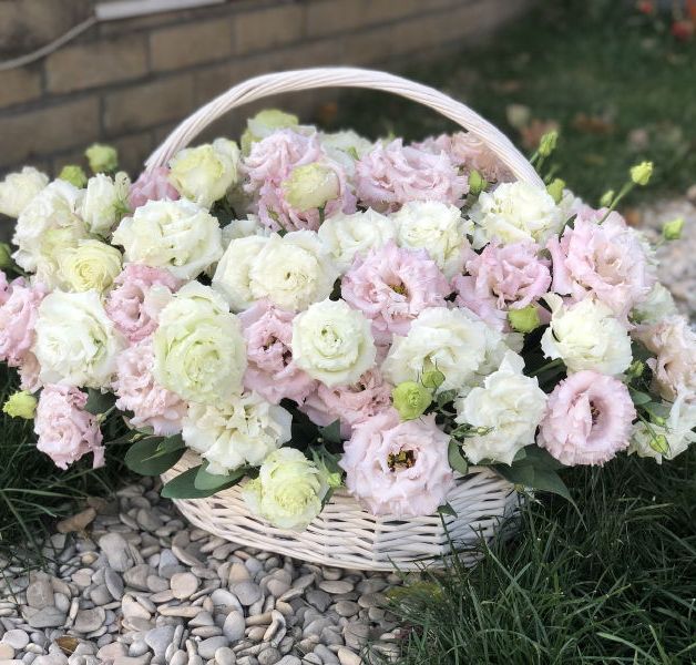 Монументальная композиция из полутора сотен белоснежных бутонов создает впечатление цветочного облака. Корзина придает устойчивость и завершенность форме, позволяя разместить такой масштабный ансамбль в любом пространстве.