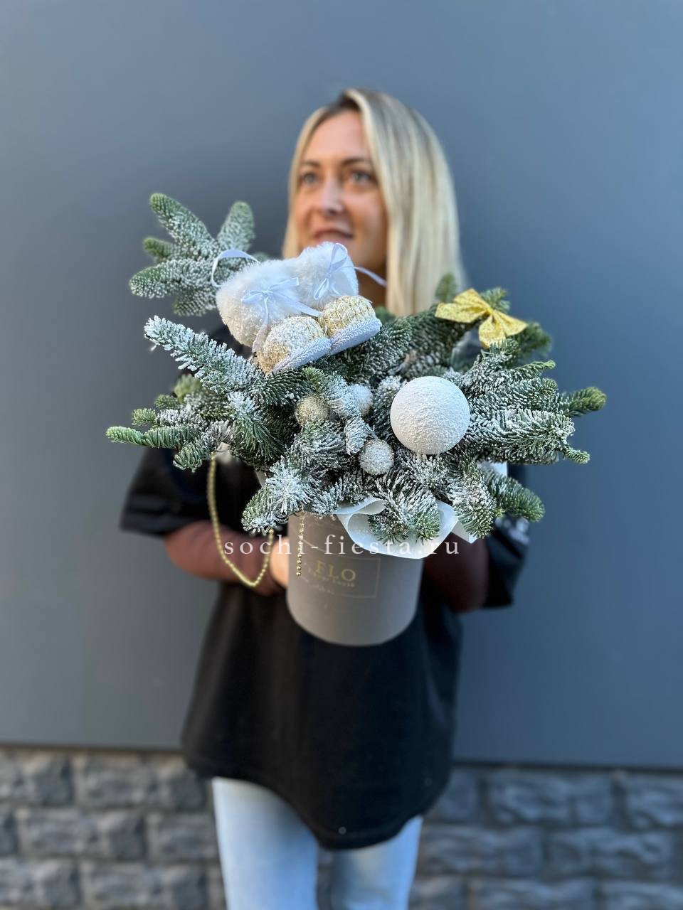 датский нобилис, сапожки, шары ВНИМАНИЕ! Готовая композиция (декор) может иметь незначительные внешние отличия от примера на фотографии.