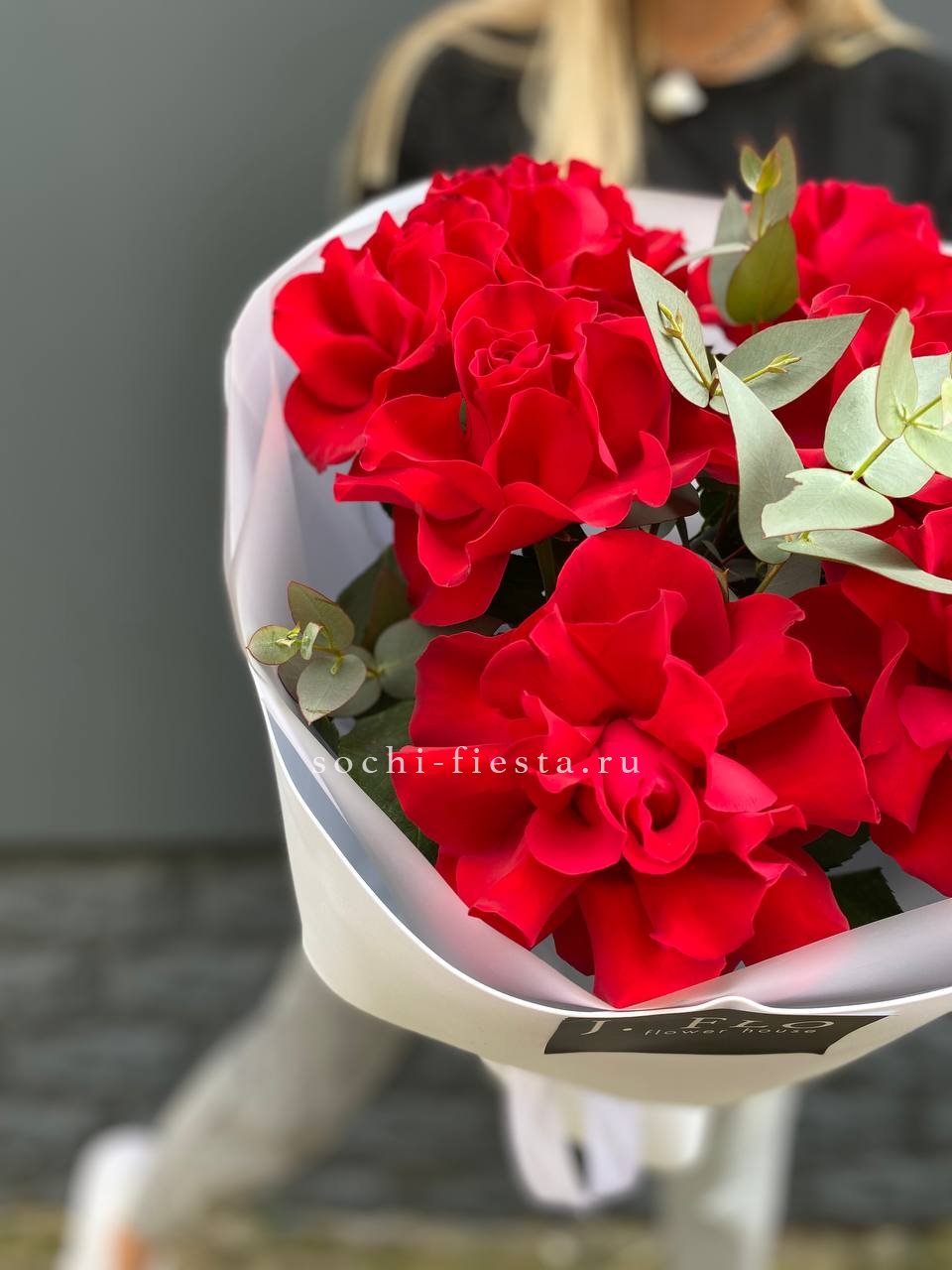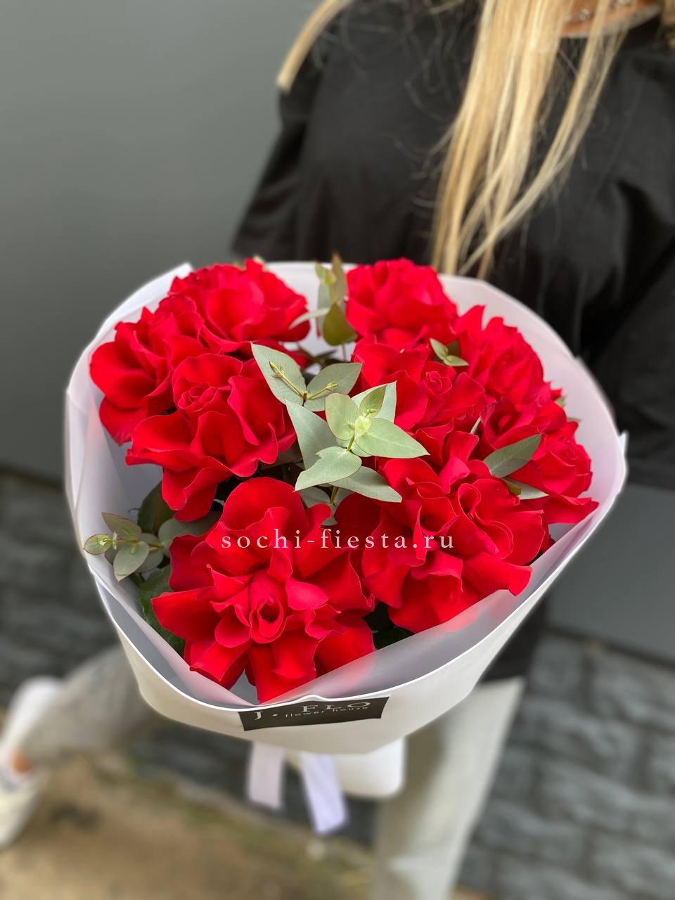 9 роз с эвкалиптом