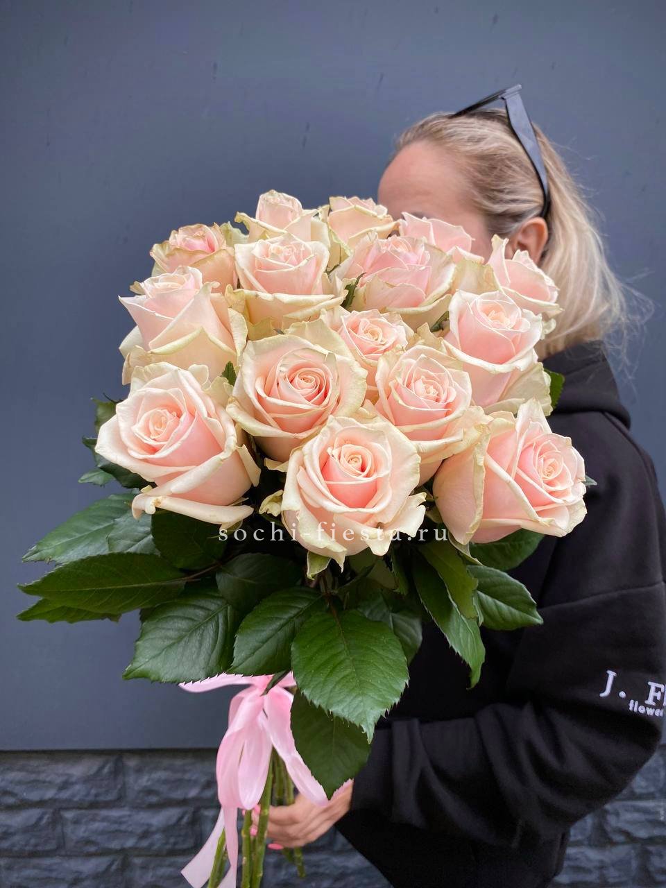 Сто одна роза в кремовых тонах — масштабная композиция с выразительным объемом. Букет наполняет пространство и создает запоминающееся визуальное присутствие.