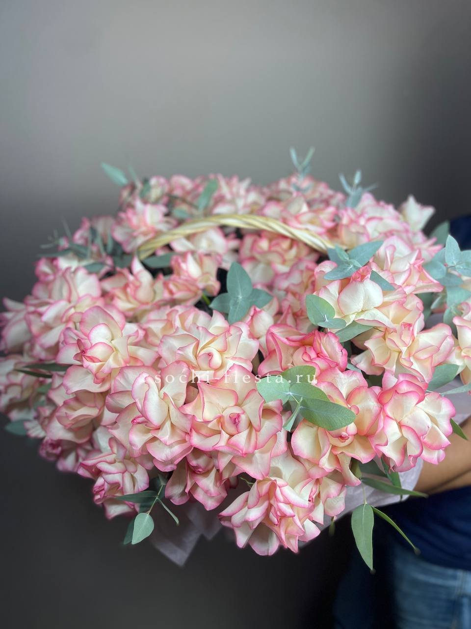вывернутые розы - 13 шт., эвкалипт-1шт., лента, авторская упаковка.