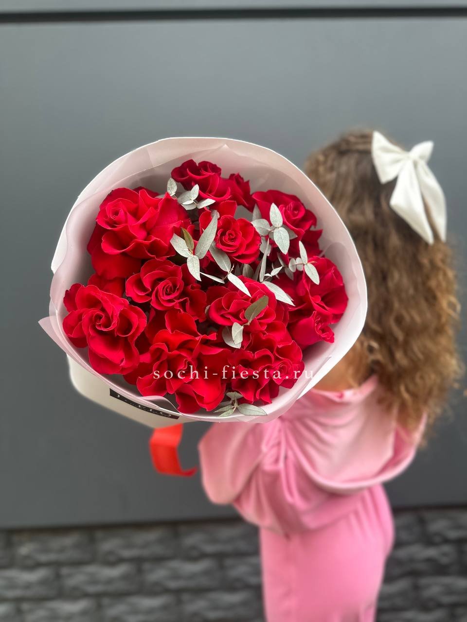 вывернутые розы - 5 шт., эвкалипт - 2шт., лента, авторская упаковка.