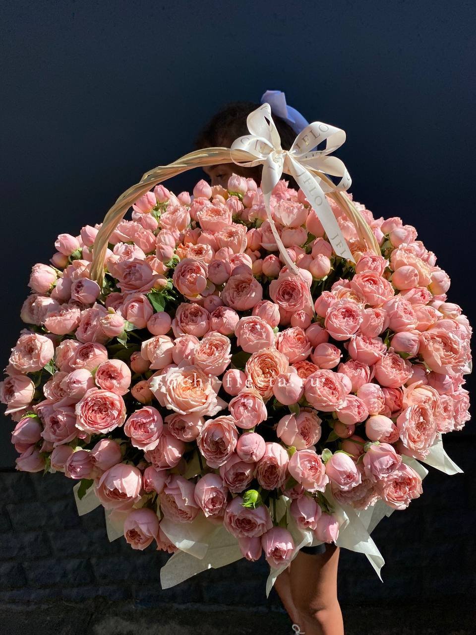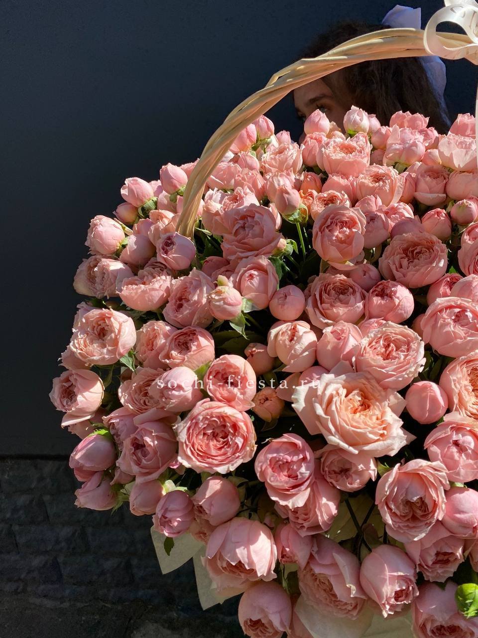 яркая корзина из 101 кустовой пионовидной розы сорта.