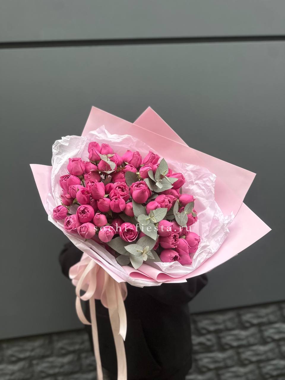 15 кустовых роз спрей, лента, упаковка на выбор.