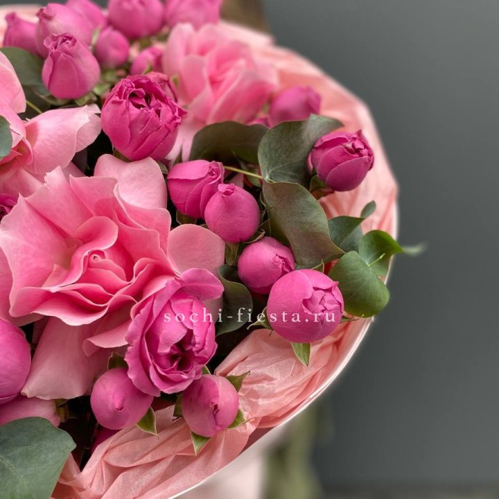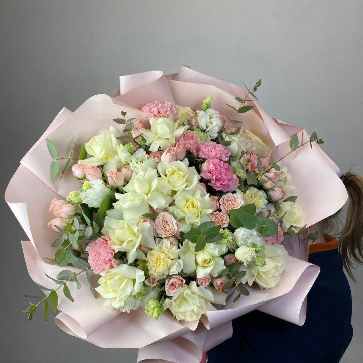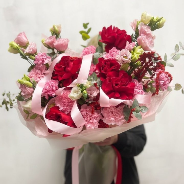 Зима и лето в Бийске — розы и хризантемы как основа. Эти виды стабильны в поставках круглый год. Флорист дополняет их сезонными акцентами: хвойные ветви зимой, открытая эустома летом. Сборный букет в любое время года выглядит живым и актуальным.