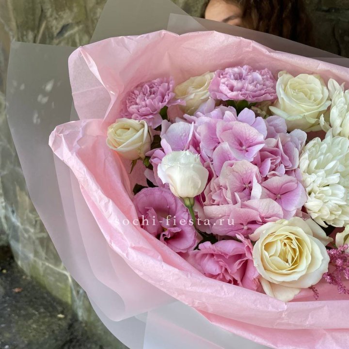 Зима и лето в Бийске — розы и хризантемы как основа. Эти виды стабильны в поставках круглый год. Флорист дополняет их сезонными акцентами: хвойные ветви зимой, открытая эустома летом. Сборный букет в любое время года выглядит живым и актуальным.