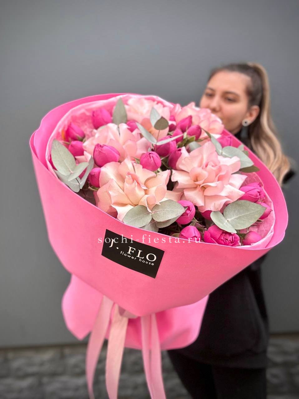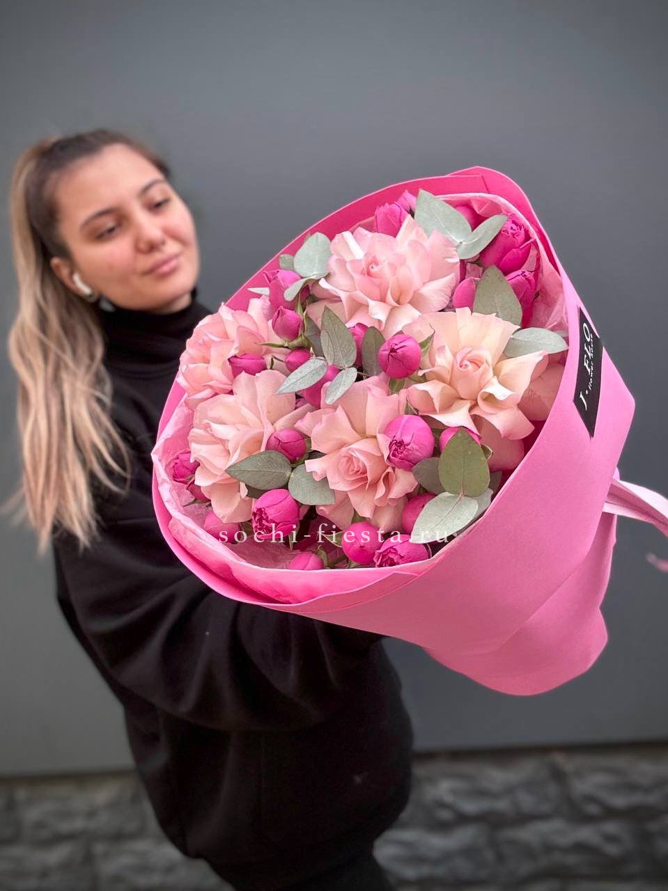 Для заказа товара "Букет французских и пионовидных роз "Ламиносо"" с доставкой в Бийске нажмите в корзину