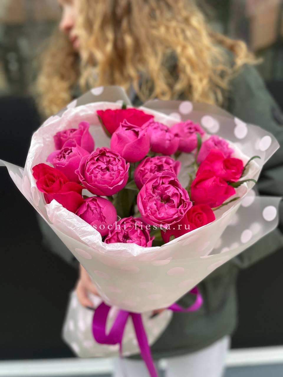 Для заказа товара "Букет из роз и диантусов "Пенелопа"" с доставкой в Бийске нажмите в корзину