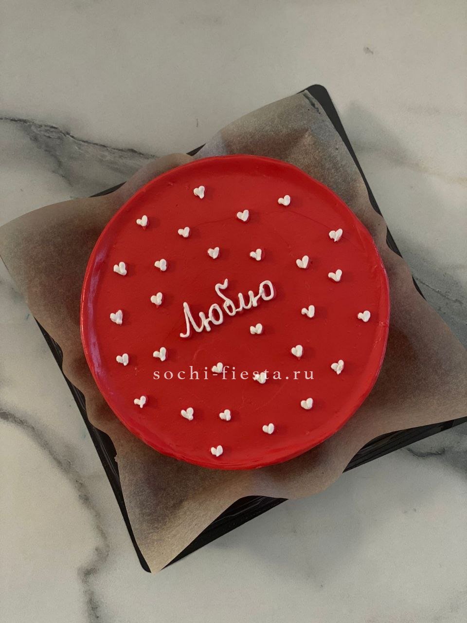 Миниатюрный торт с яркой надписью и домашним теплом в каждом слое. Крем держит форму, а бисквит остается влажным благодаря небольшому объему и свежести выпечки.