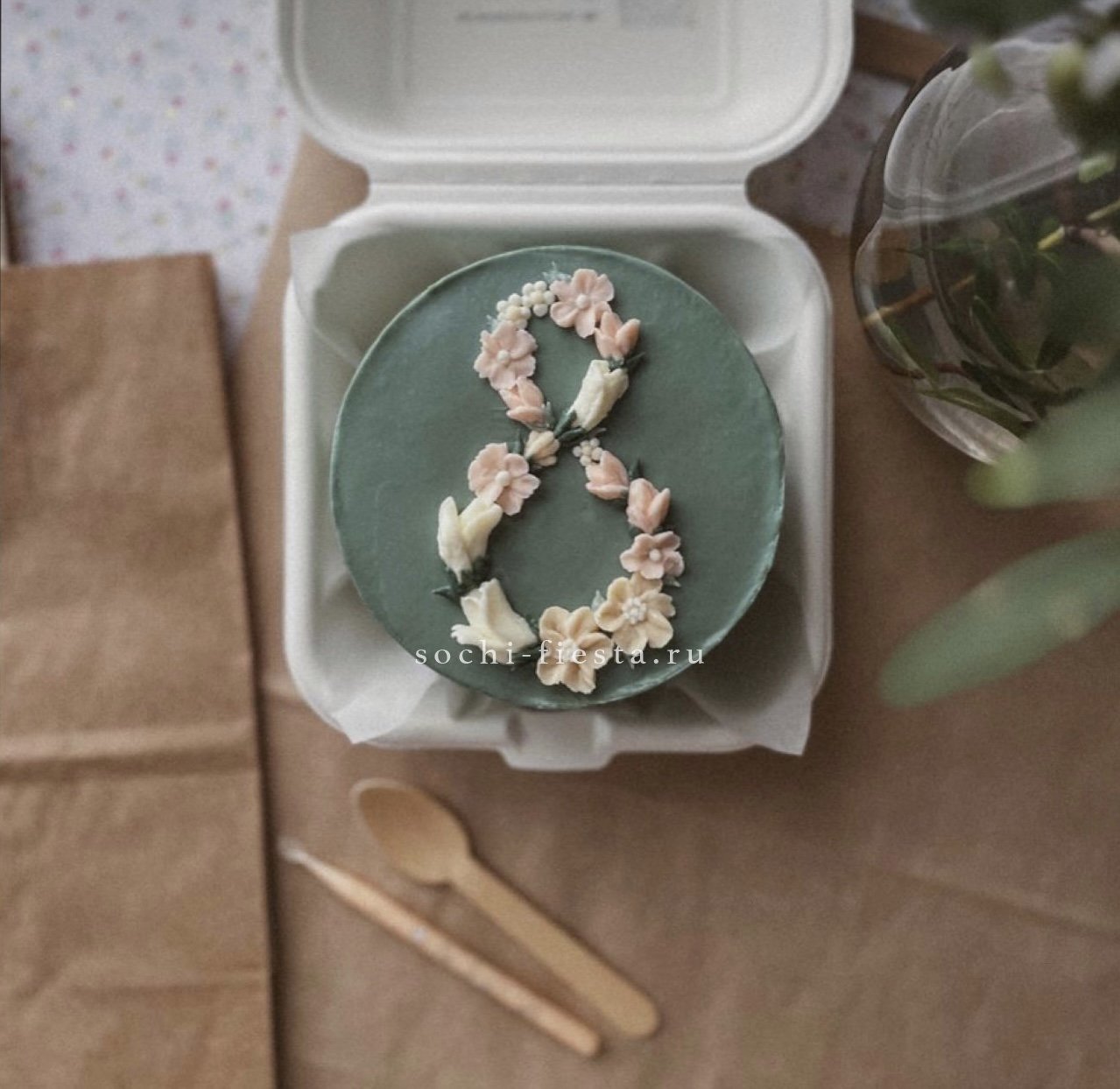 Дизайнерский бенто-торт ручной работы с поздравительной надписью и готовым декором. Формат удобен для камерного чаепития или как дополнение к основному подарку.